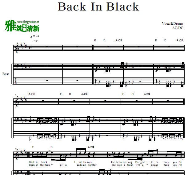 ACDC乐队乐谱 Back In Black 贝司谱