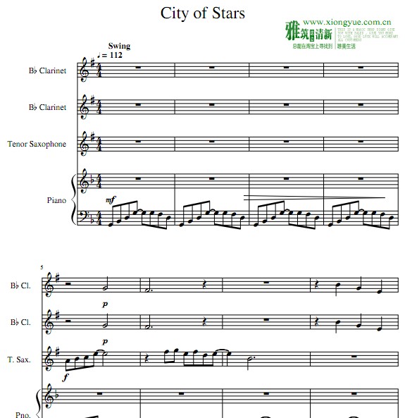 爱乐之城 city of stars单簧管 萨克斯 钢琴重奏谱