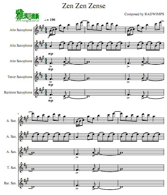 你的名字 前前前世萨克斯五重奏谱