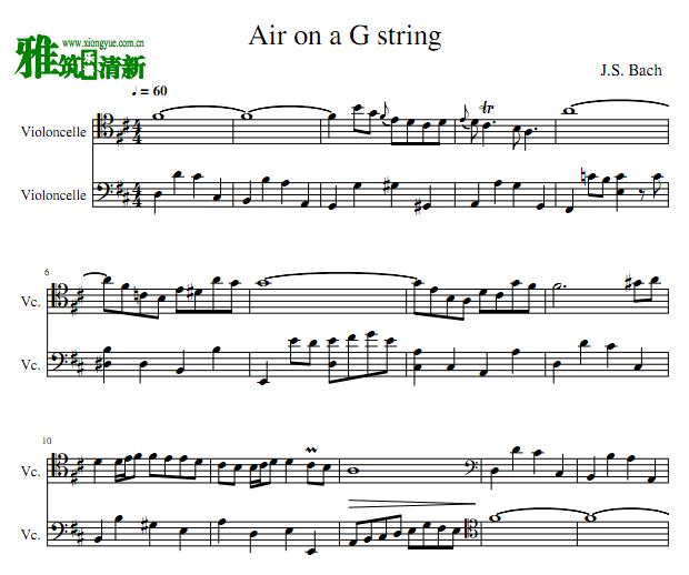 Air on a G string G弦上的咏叹调大提琴二重奏谱