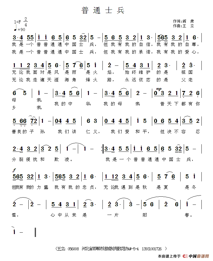 普通士兵简谱 阎肃词 王立曲 民歌曲谱 中国曲谱网