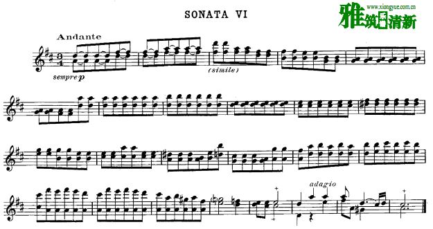 勒克莱尔 Leclair sonatas for two violins op.3 No.6小提琴二重奏谱