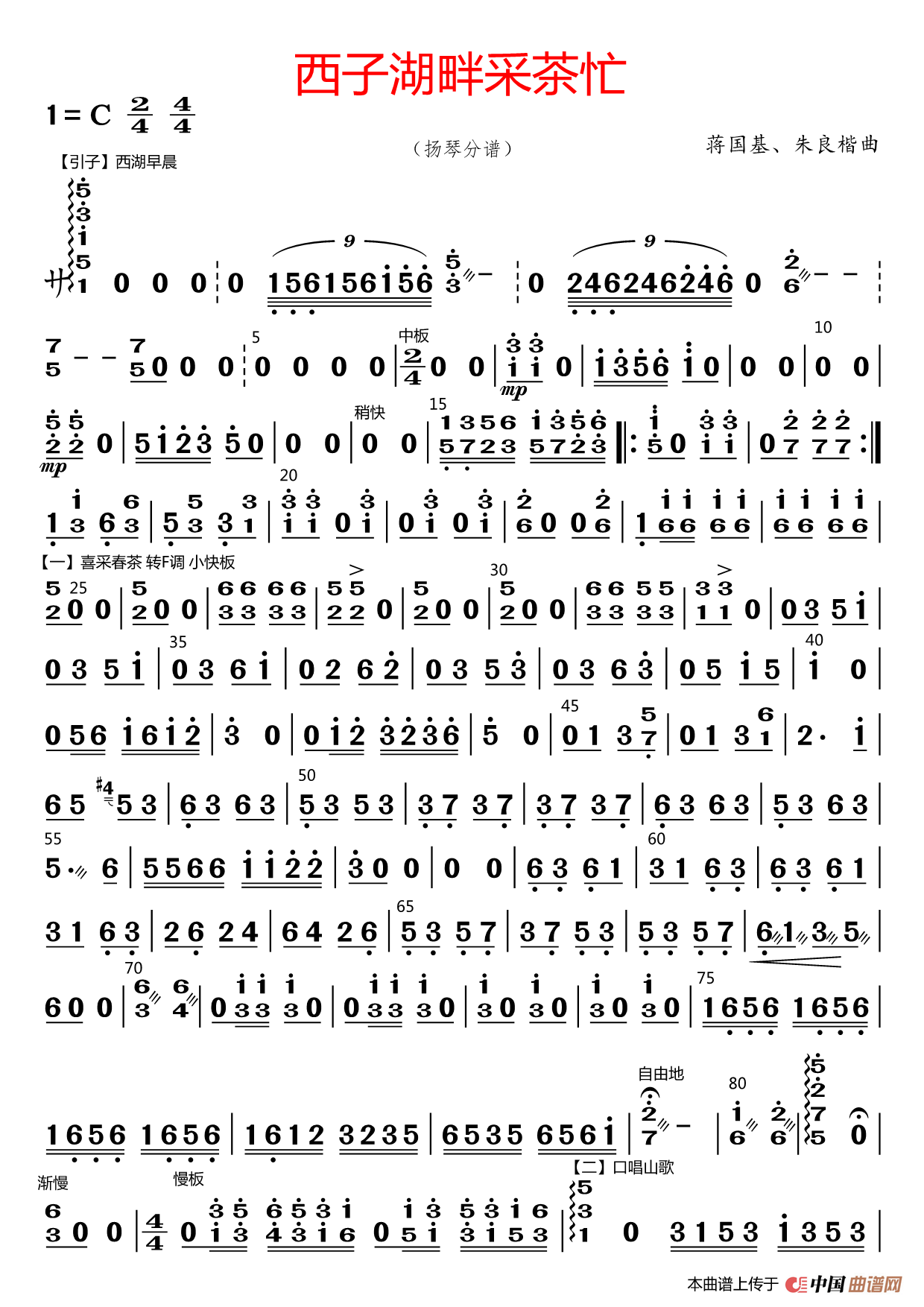 西子湖畔采茶忙 扬琴分谱