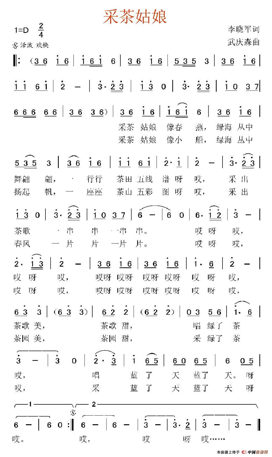 采茶姑娘 李晓军词 武庆森曲