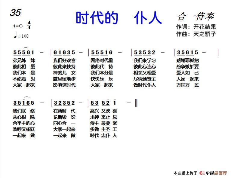 点击查看剩余 1 张曲谱《35 时代的仆人》文本歌词