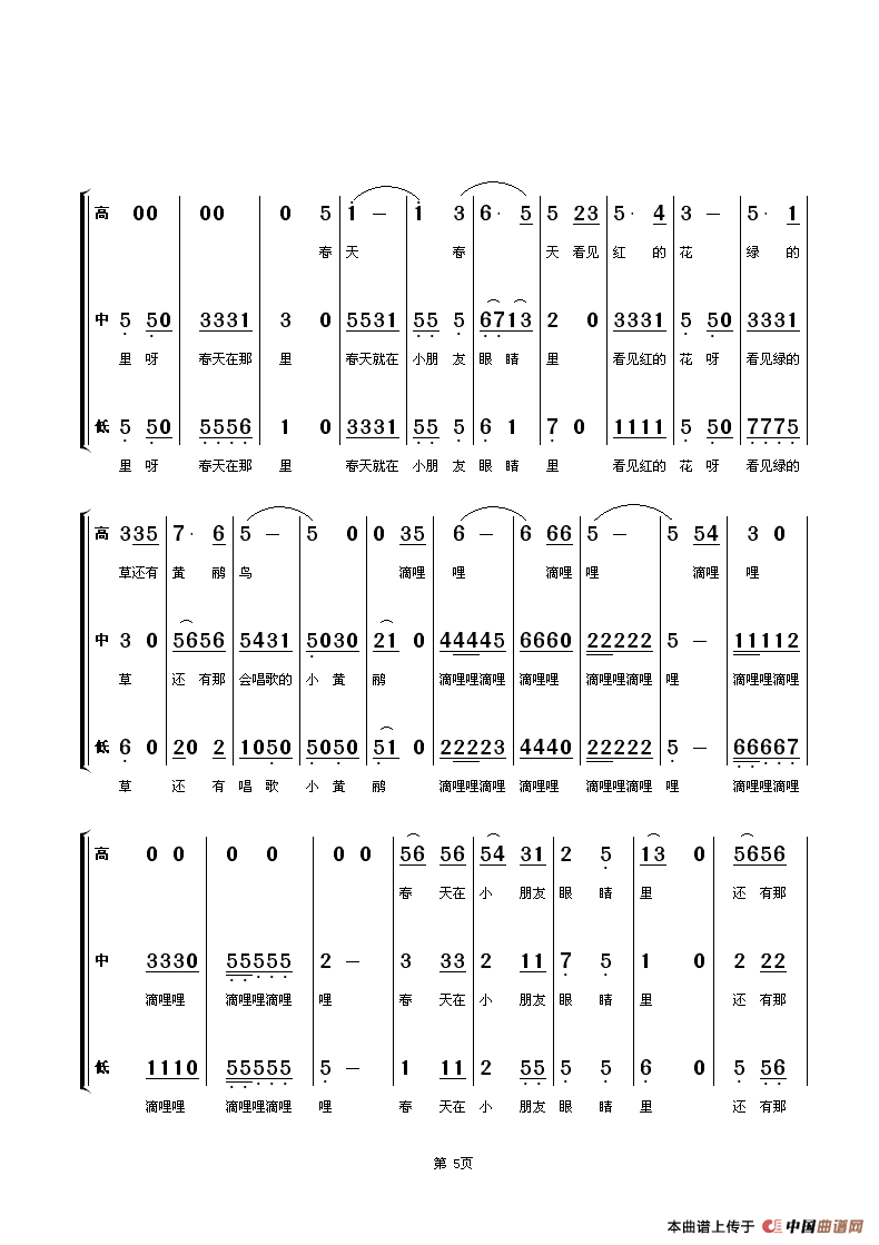 滴哩滴哩(少儿三声部合唱)