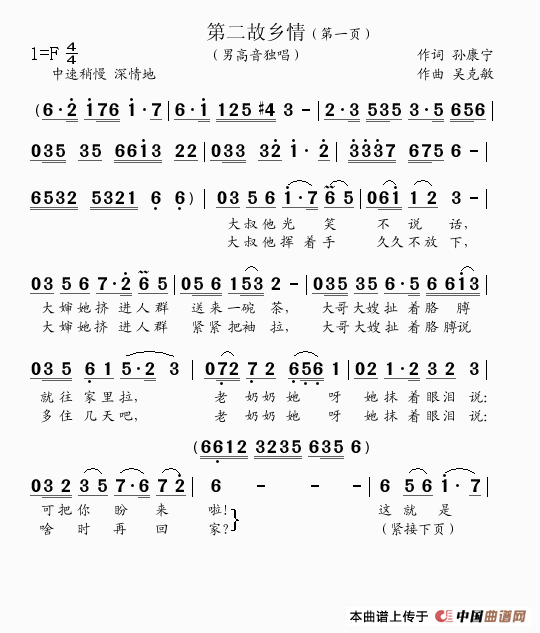 二胡乐谱曲谱 我的祖国(二胡二重奏 影片《上甘岭