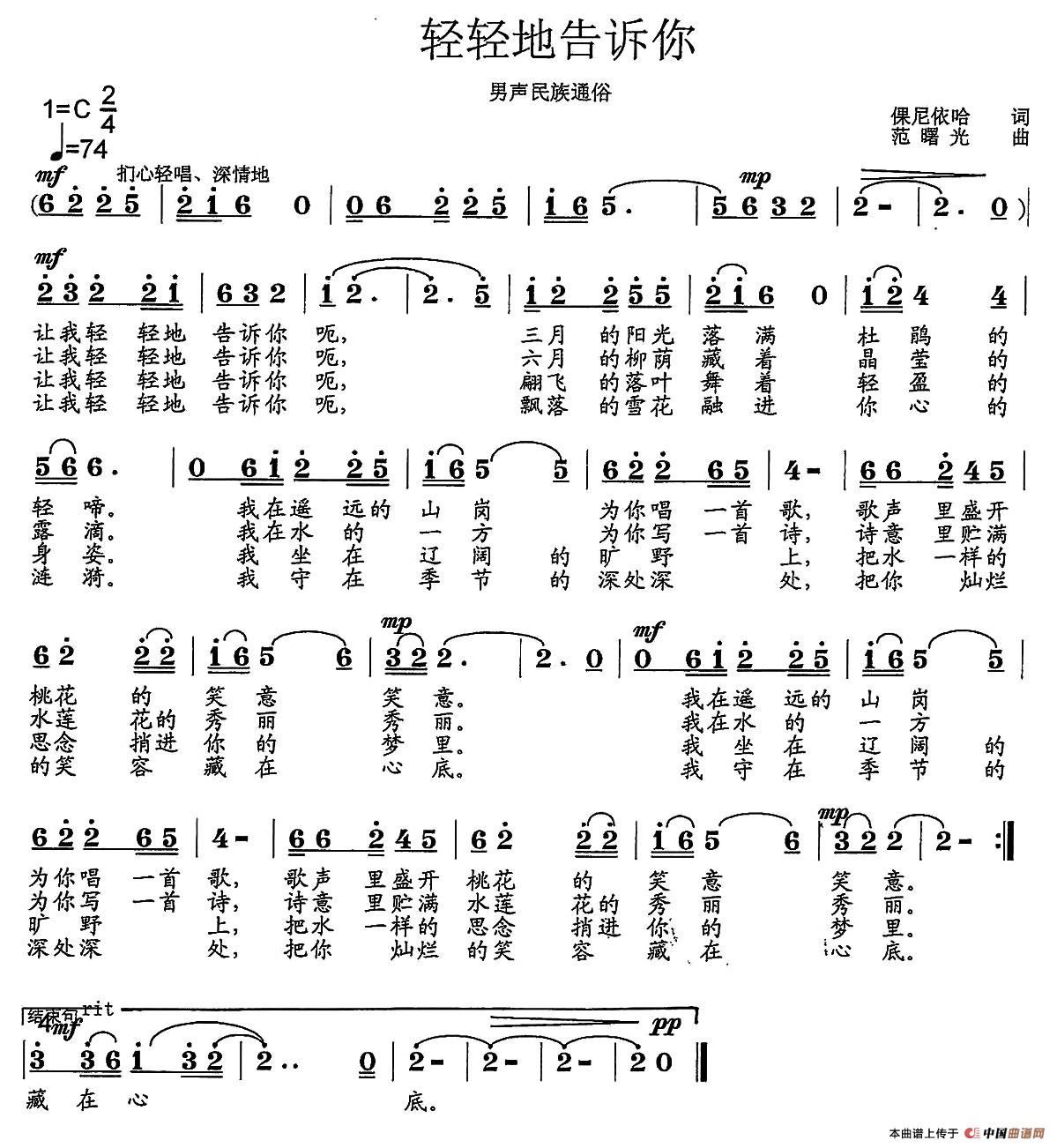 轻轻的告诉你(倮你依哈词 范曙光曲)
