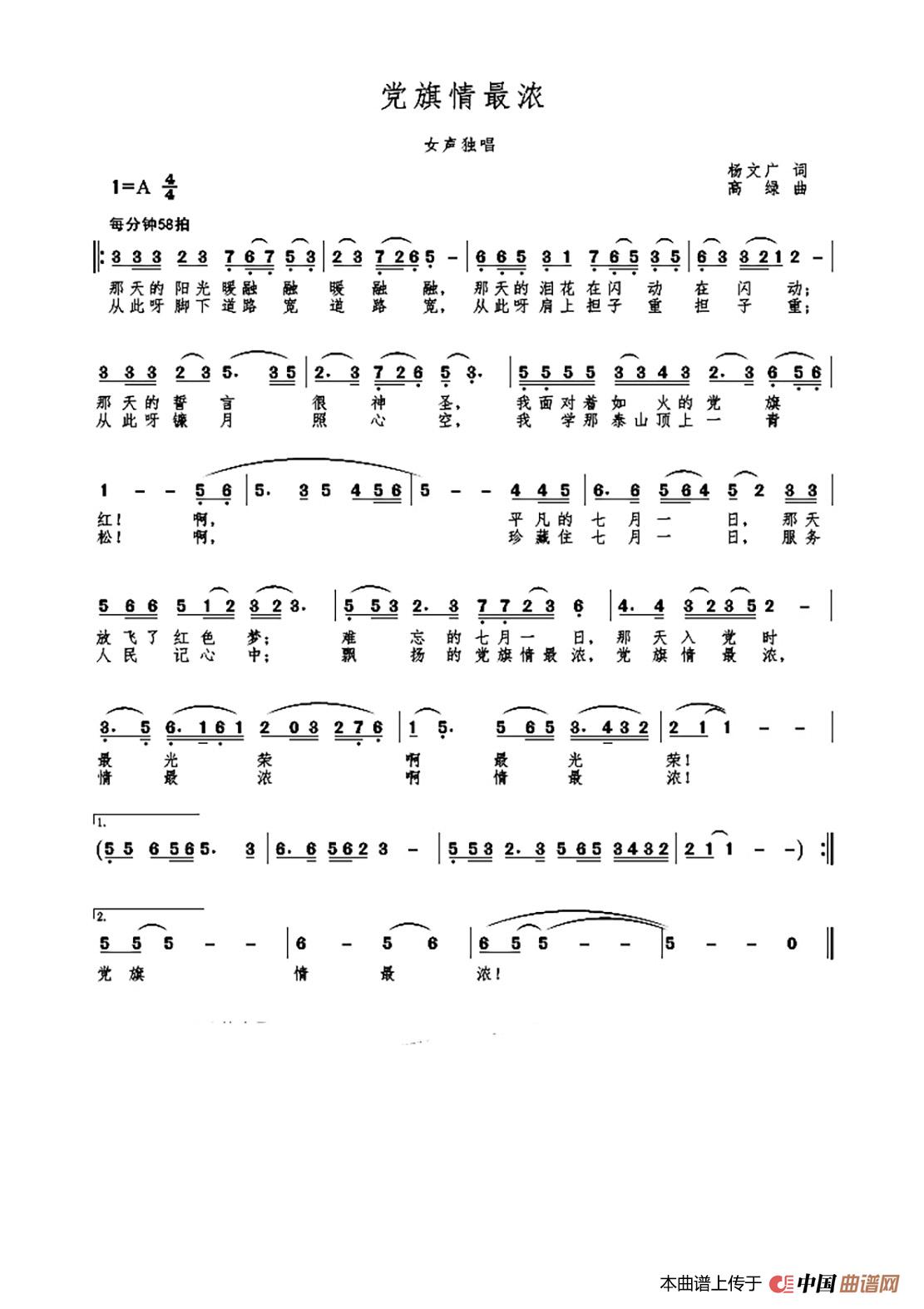 二胡乐谱曲谱 我的祖国(二胡二重奏 影片《上甘岭