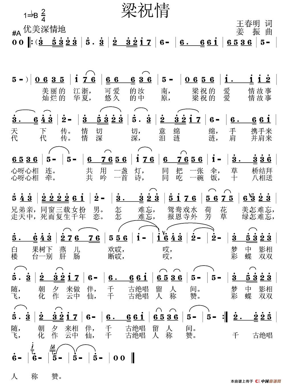 京剧戏曲谱 《梁山伯与祝英台》祝英台唱段:彩蝶飞