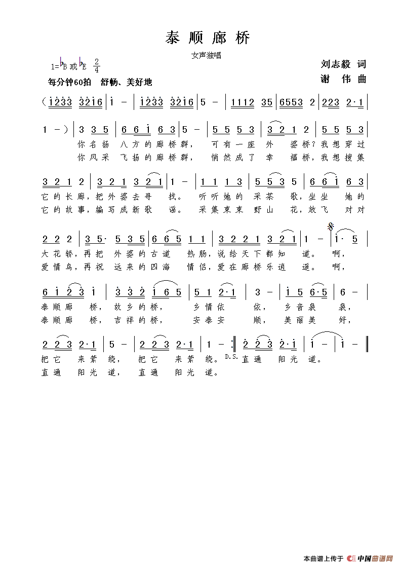 京剧戏曲谱 春风送暖桃花艳(京歌 刘春爱词曲)