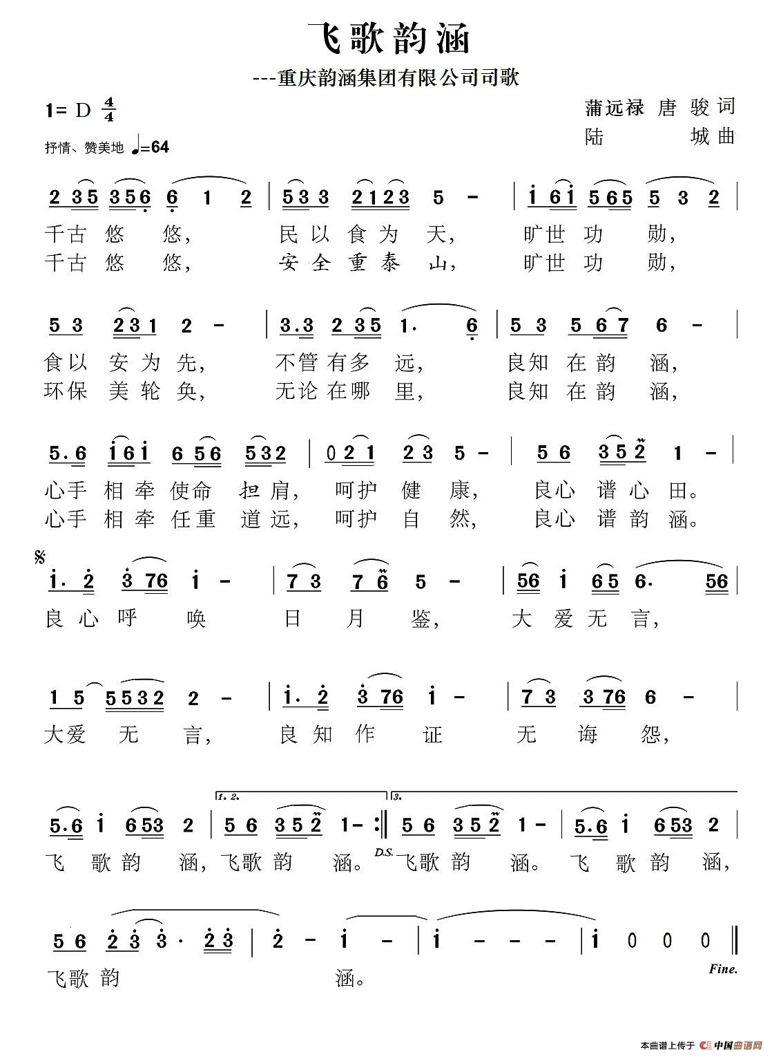 点击查看剩余 1 张曲谱《飞歌韵涵》文本歌词