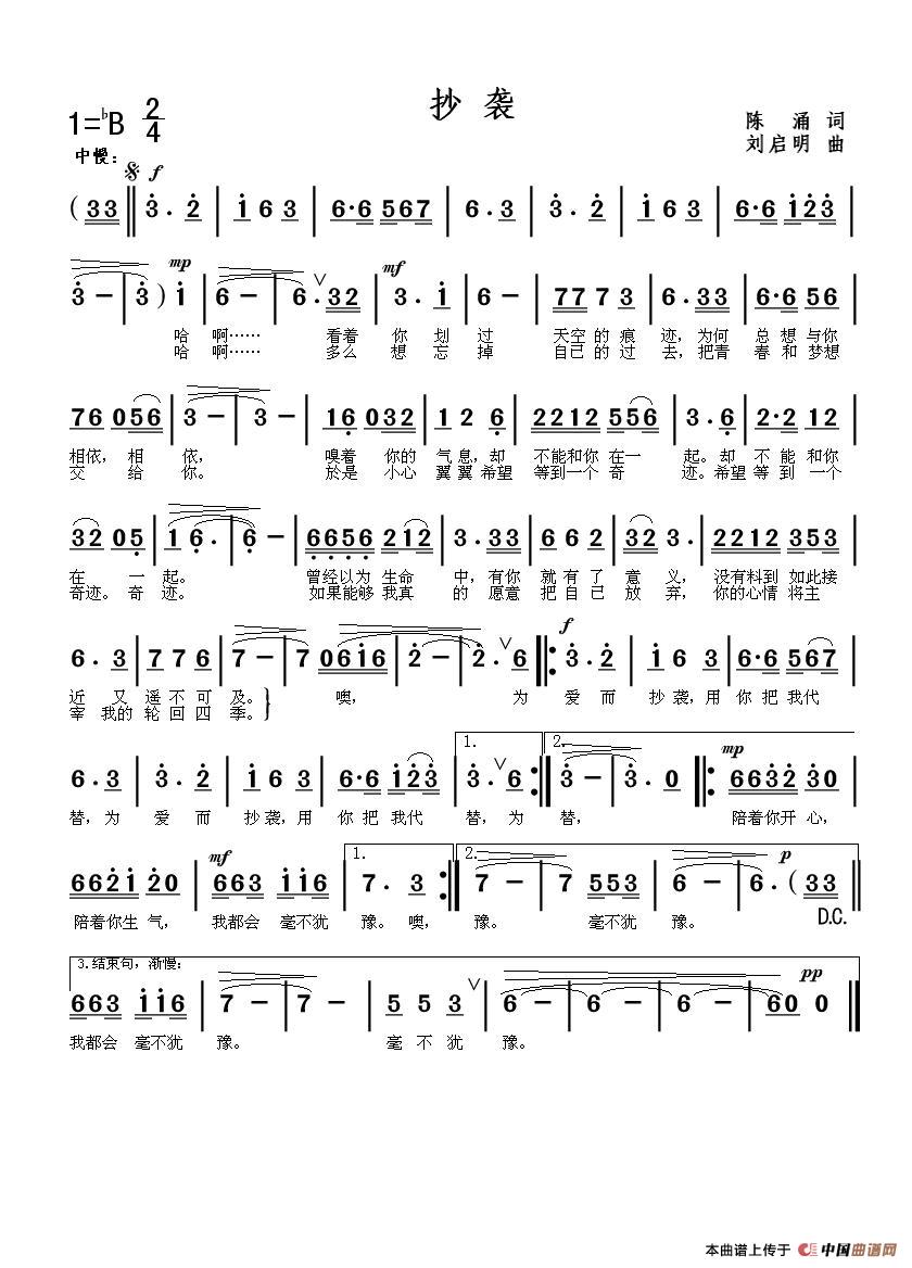 点击查看剩余 1 张曲谱《抄袭》文本歌词
