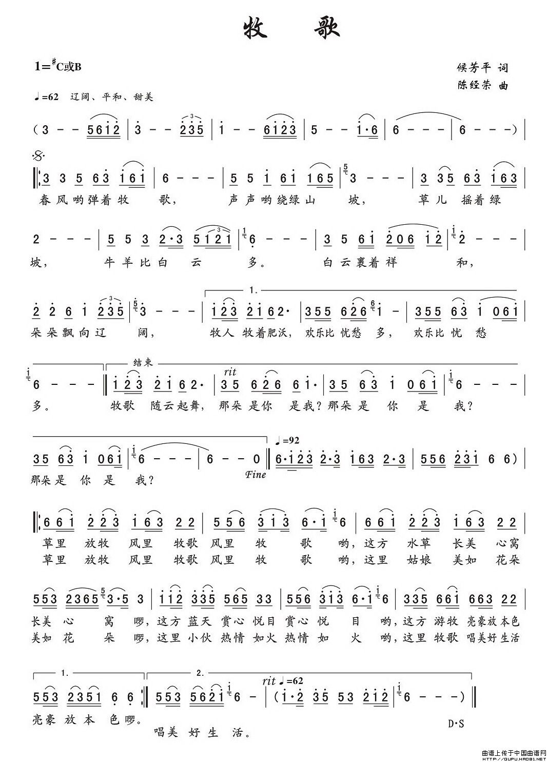 牧歌(侯芳平词 陈经荣曲)