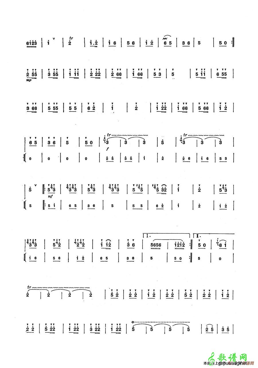 二胡乐谱曲谱 牧民归来(刘明沅曲)