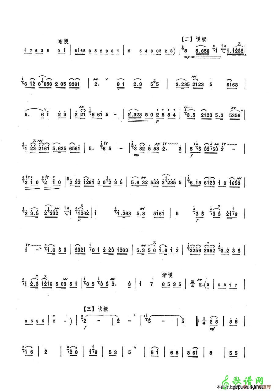 二胡乐谱曲谱 沂蒙随想曲(扬琴伴奏谱 刘建勋曲)