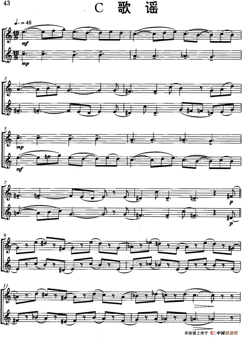 二胡乐谱曲谱 我的祖国(二胡二重奏 影片《上甘岭