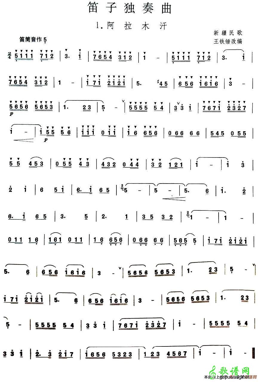 【阿拉木汗笛子谱】