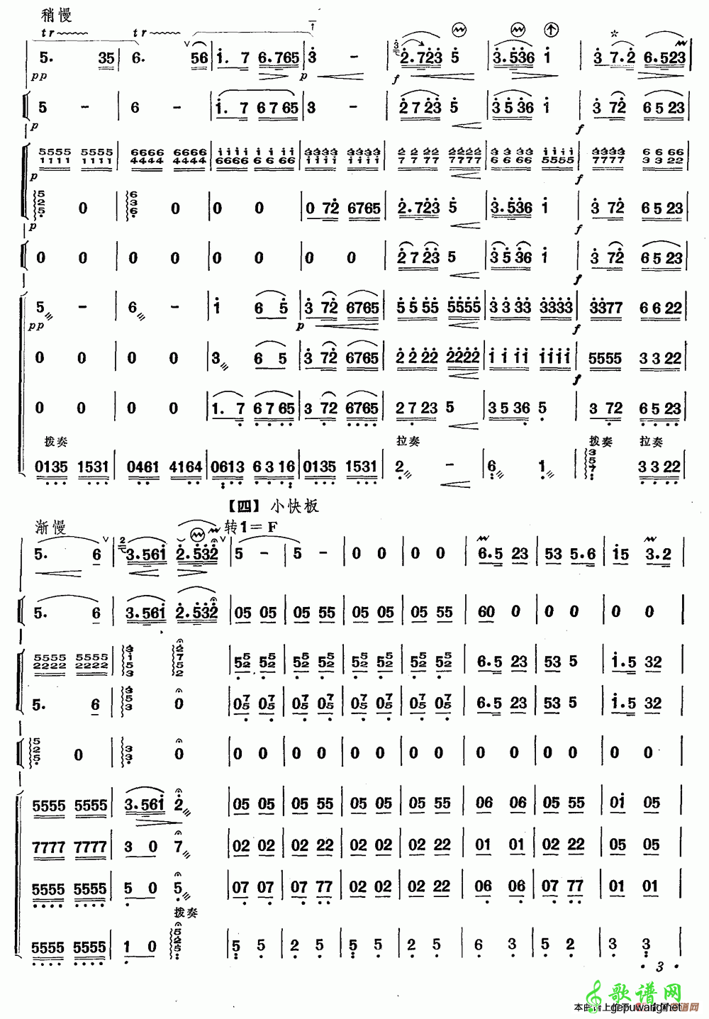扬琴乐谱曲谱 陕北民歌:绣金匾(郭兰英演唱 梁多
