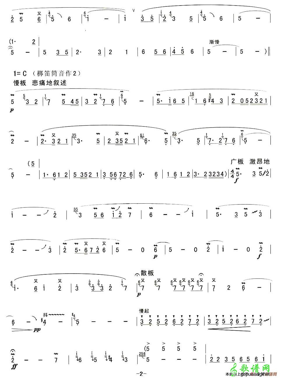 二胡乐谱曲谱 道情调(江苏民歌 周成龙改编)