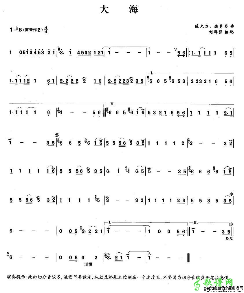 二胡乐谱曲谱 我的祖国(二胡二重奏 影片《上甘岭