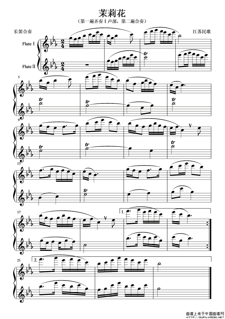 二胡乐谱曲谱 我的祖国(二胡二重奏 影片《上甘岭