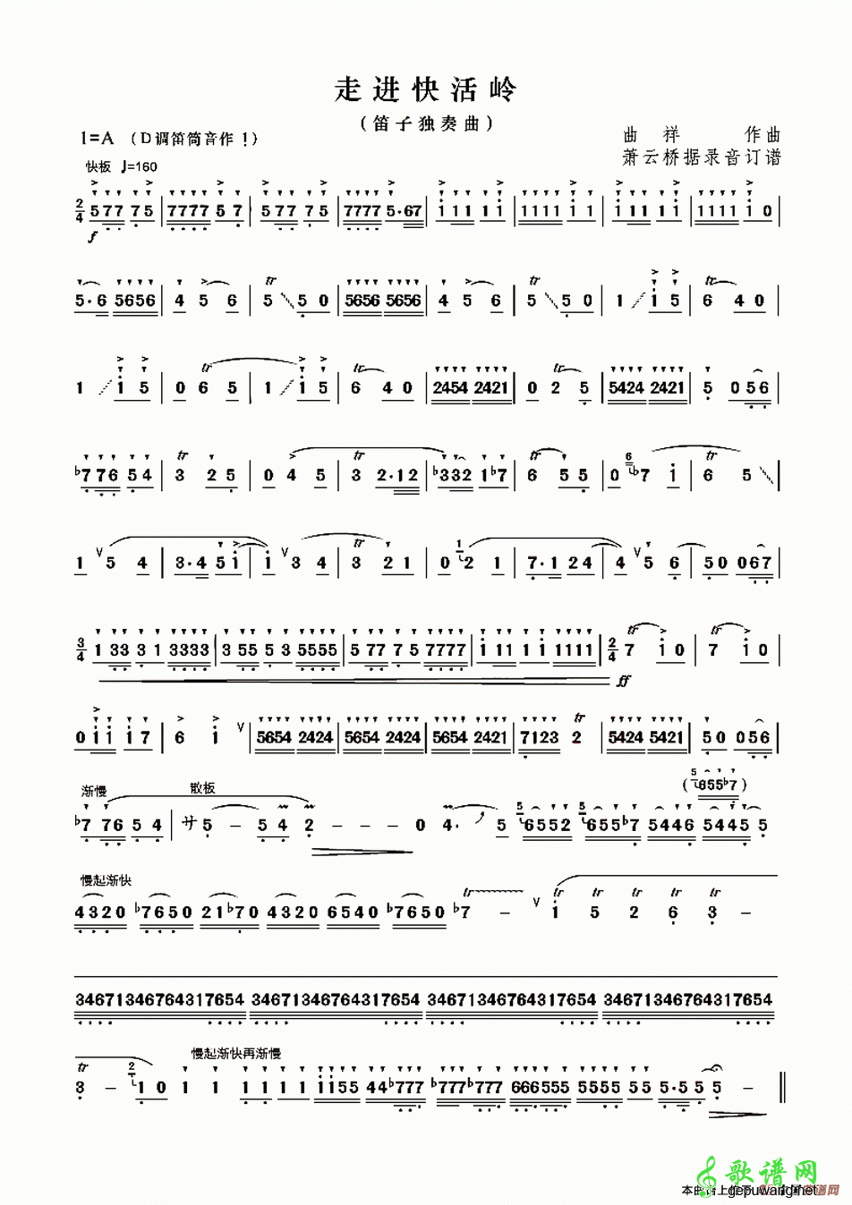 【走进快活林笛子谱】