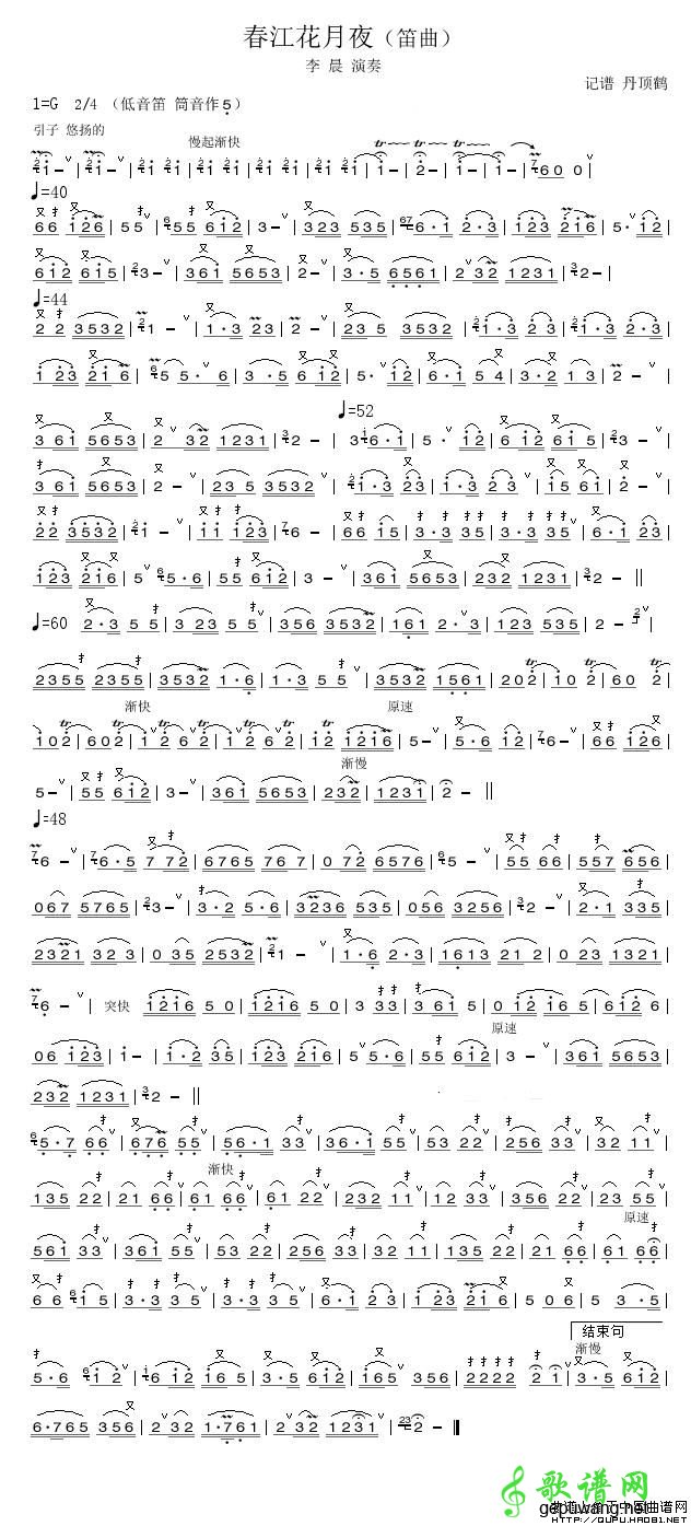 春江花月夜笛子简谱_春江花月夜萧笛曲谱