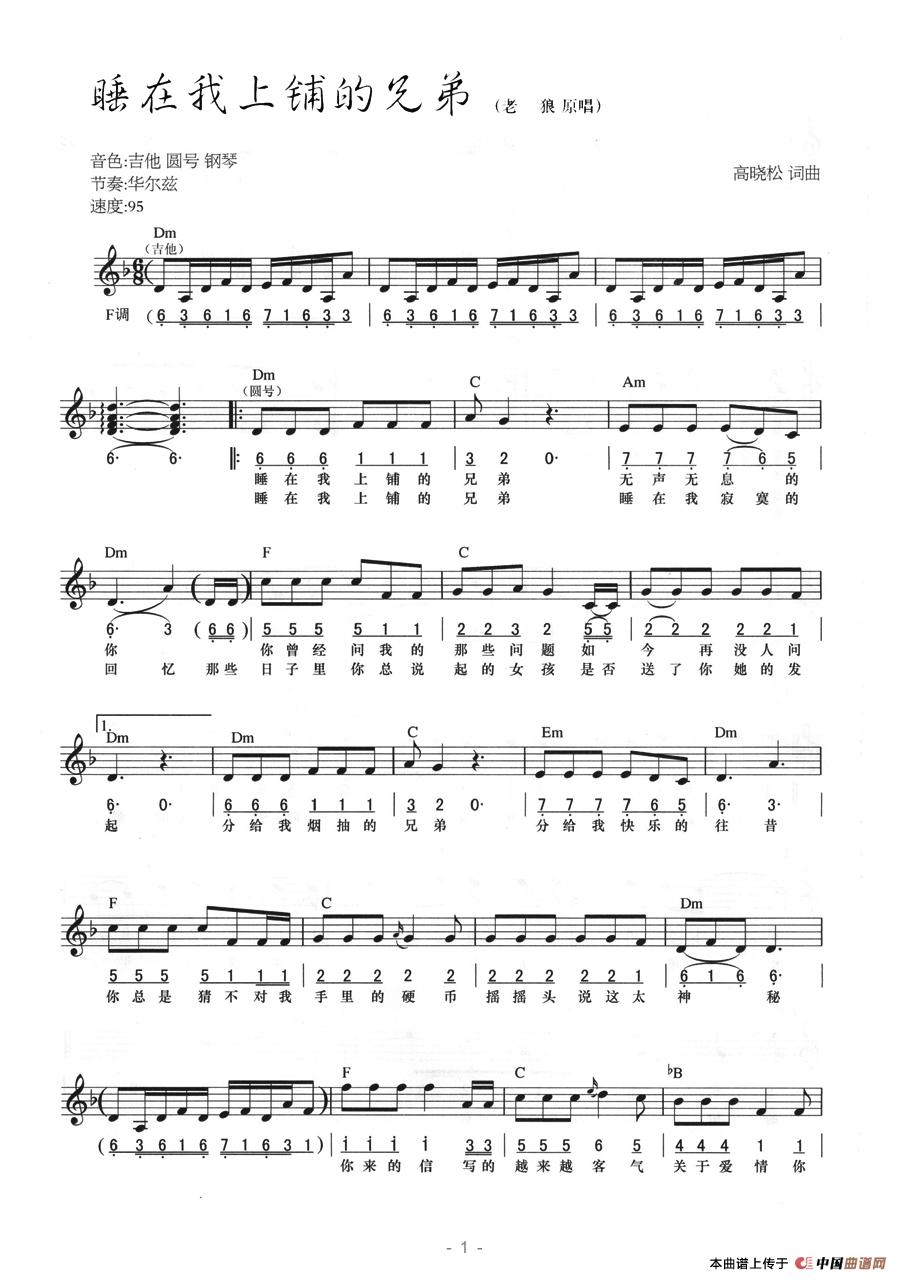 睡在我上铺的兄弟(线简混排弹唱谱)