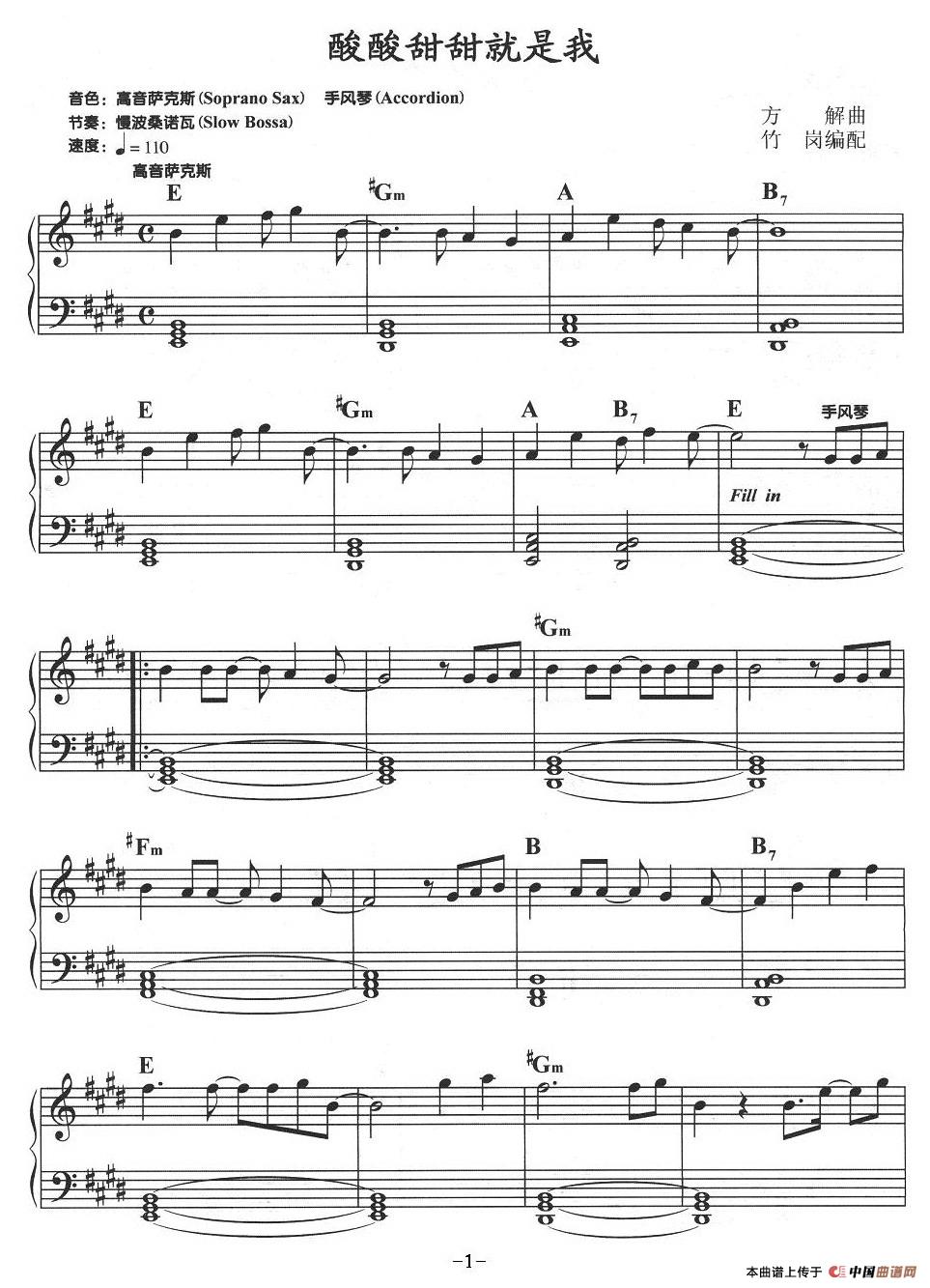 葫芦丝乐谱曲谱 甜蜜蜜(线简谱混排版)