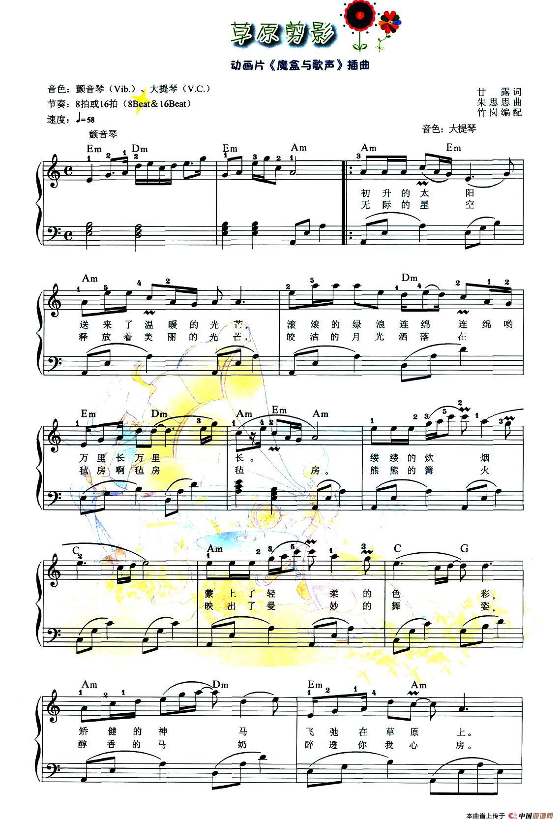 草原剪影(动画片《歌声与魔盒》插曲、弹唱谱)电子琴谱
