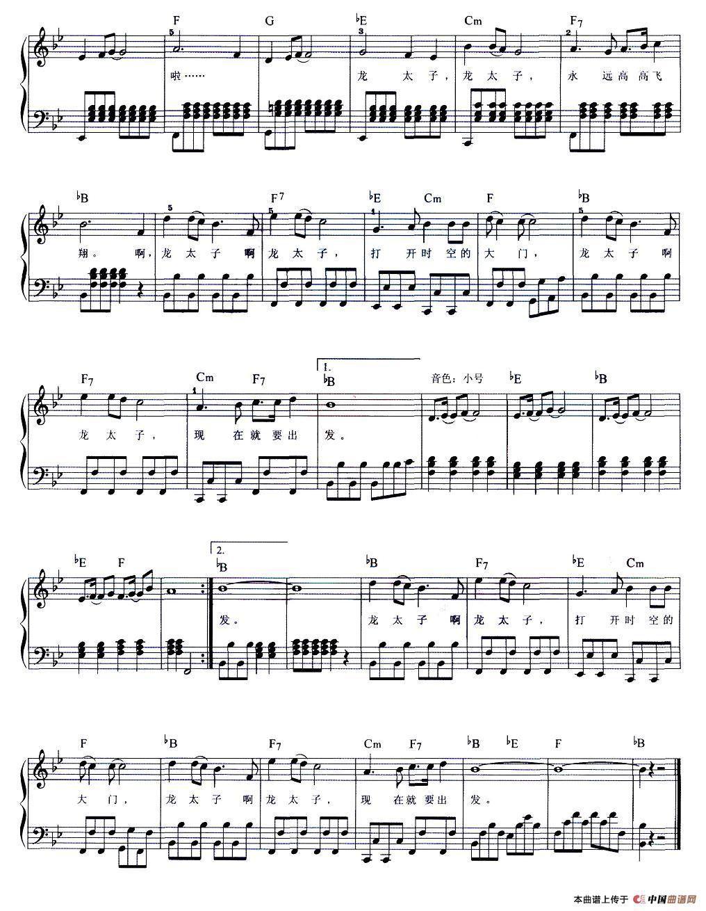 龙太子之歌(弹唱谱)电子琴谱