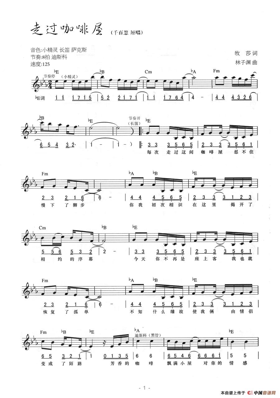 走过咖啡屋(线简混排弹唱谱)电子琴谱