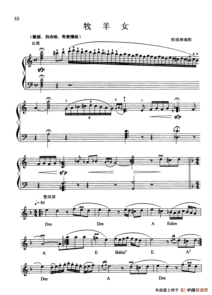 二胡乐谱曲谱 松花江上(张寒晖曲 王莉莉订谱)