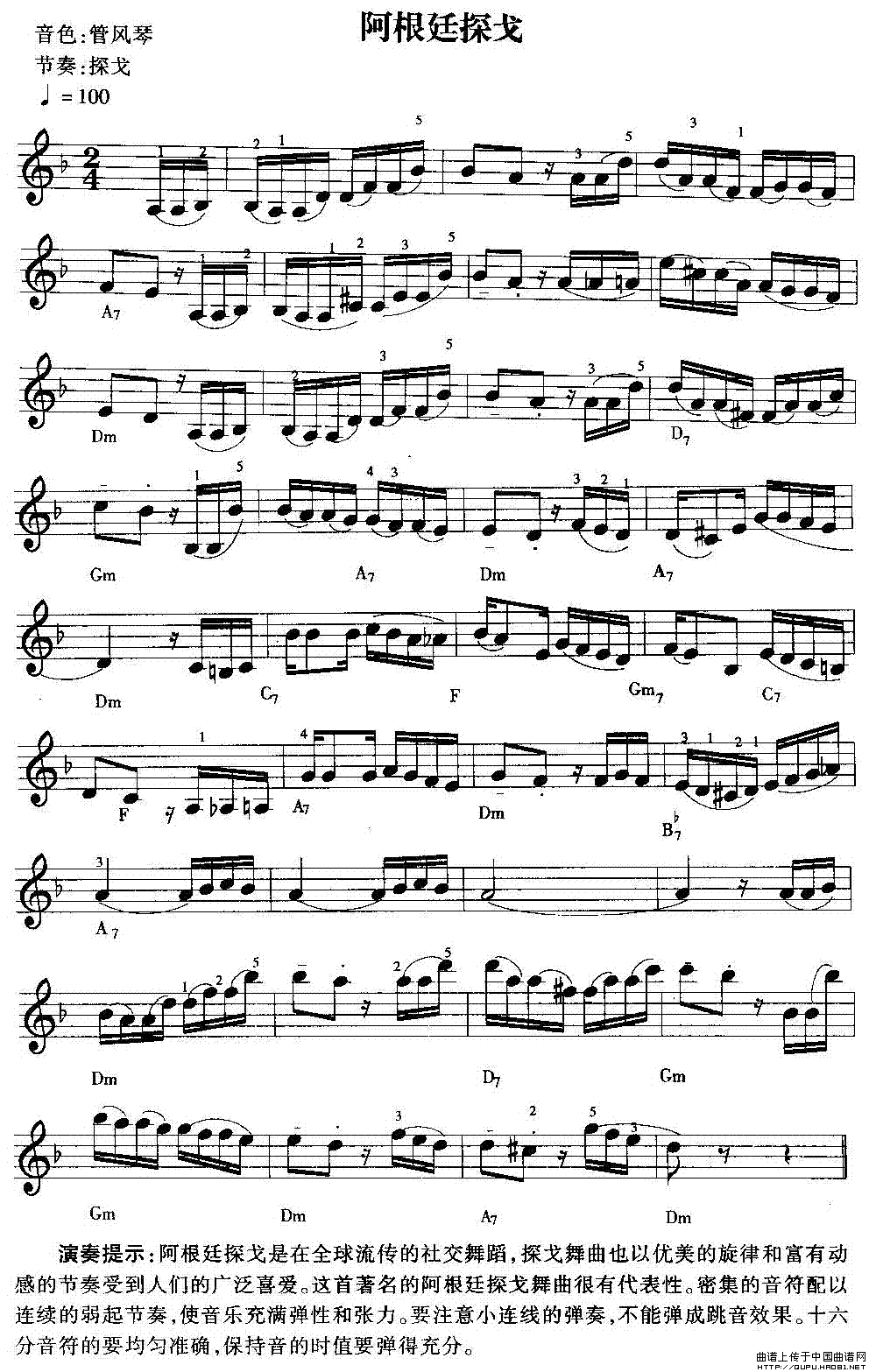 阿根延探戈电子琴谱
