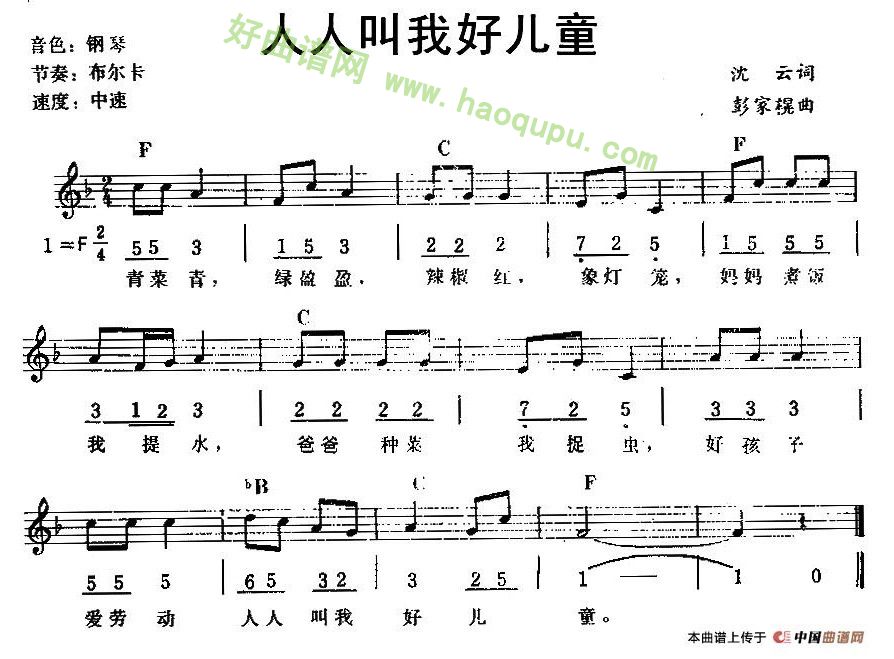《人人叫我好儿童》 电子琴简谱