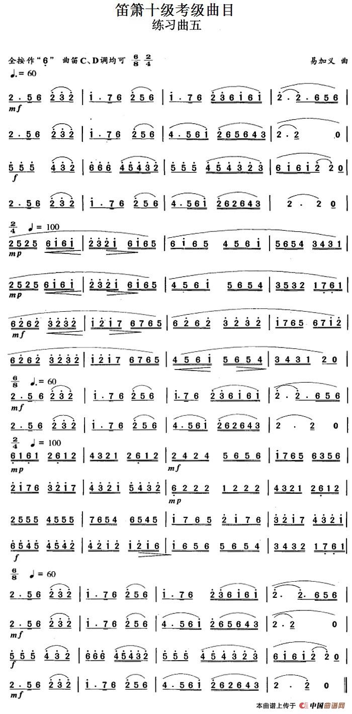 笛箫乐谱曲谱 传统曲牌:柳青娘