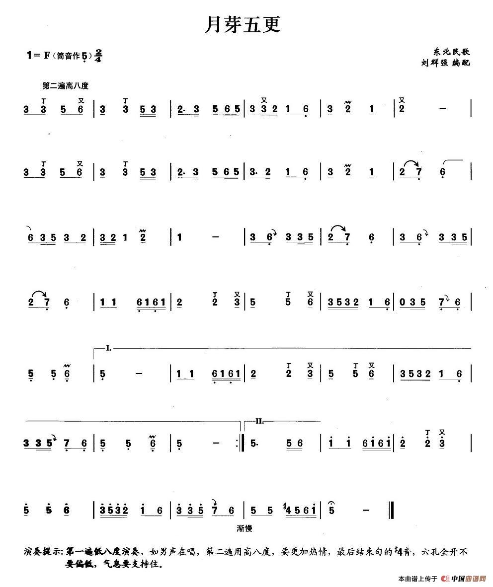 二胡乐谱曲谱 松花江上(张寒晖曲 王莉莉订谱)