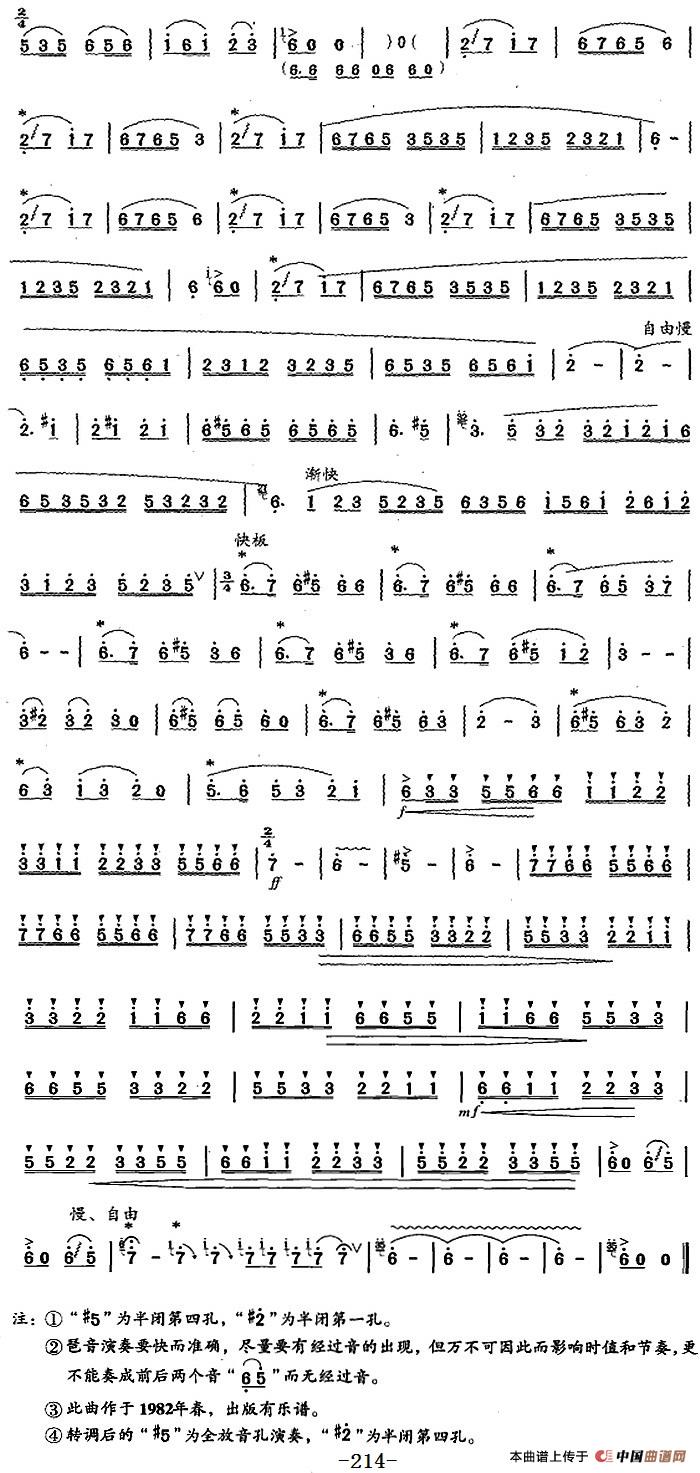 笛箫乐谱曲谱 摘苹果的时候(笛或新竹笛独奏)