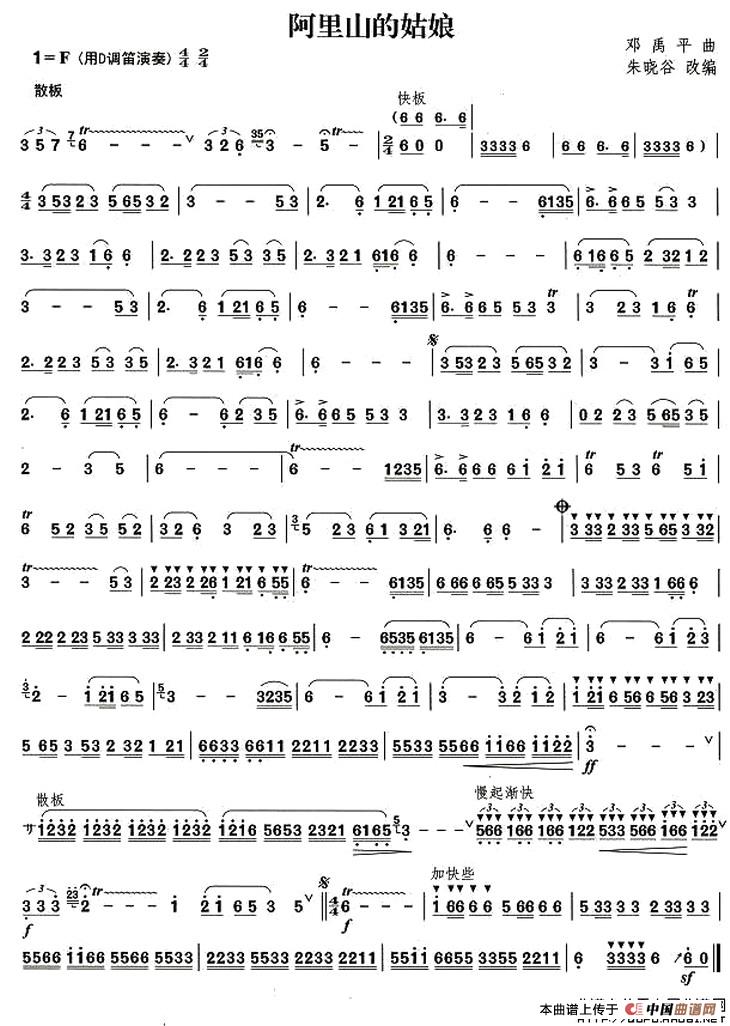 葫芦丝乐谱曲谱 排角姑娘(葫芦丝独奏 哈尼族民族