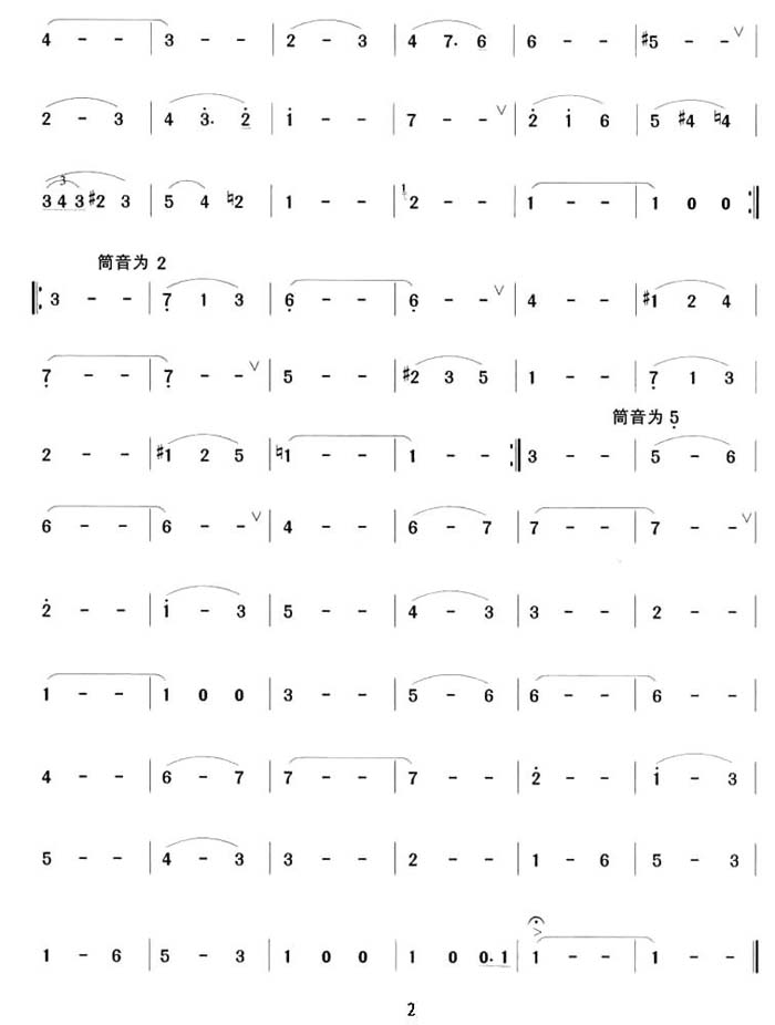 二胡乐谱曲谱 我的祖国(二胡二重奏 影片《上甘岭
