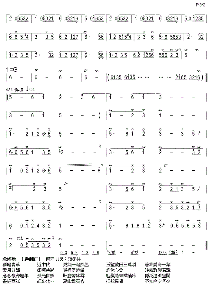 二胡乐谱曲谱 松花江上(张寒晖曲 王莉莉订谱)
