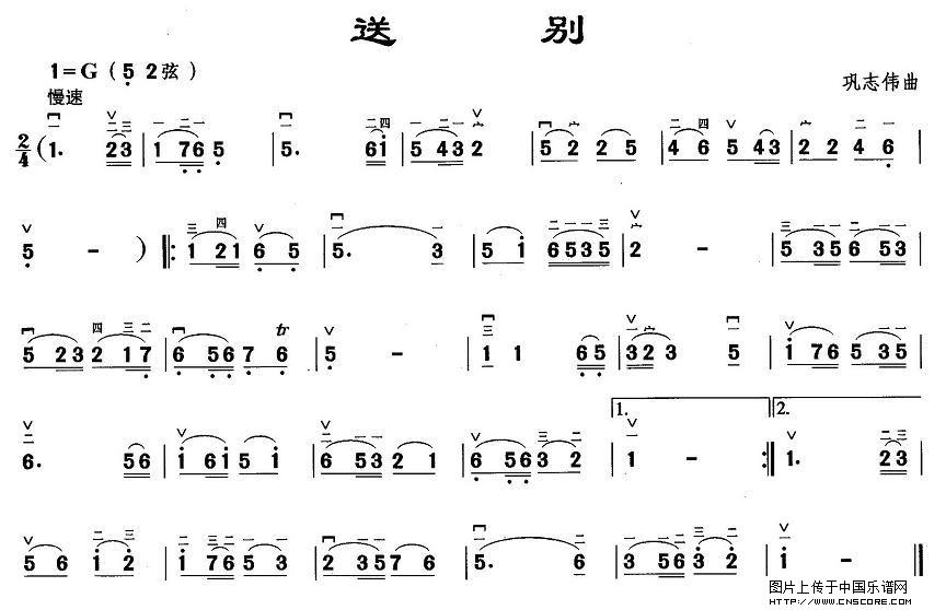曲谱名:送别二胡谱