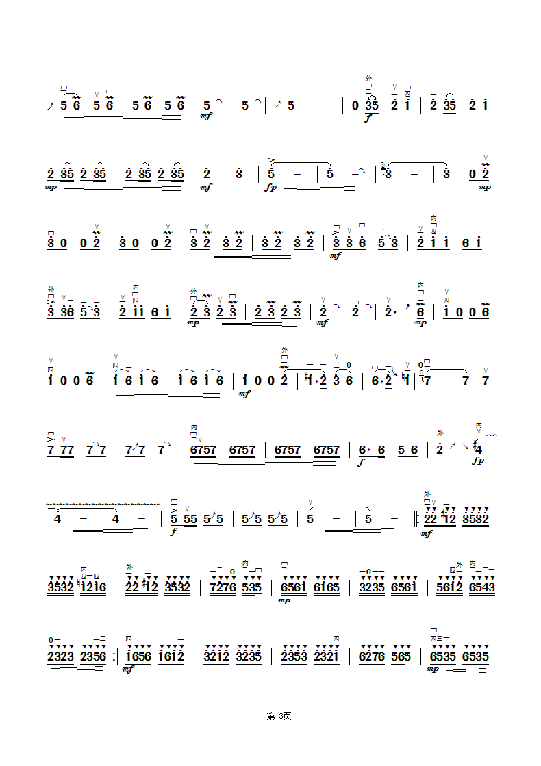 二胡乐谱曲谱 松花江上(张寒晖曲 王莉莉订谱)