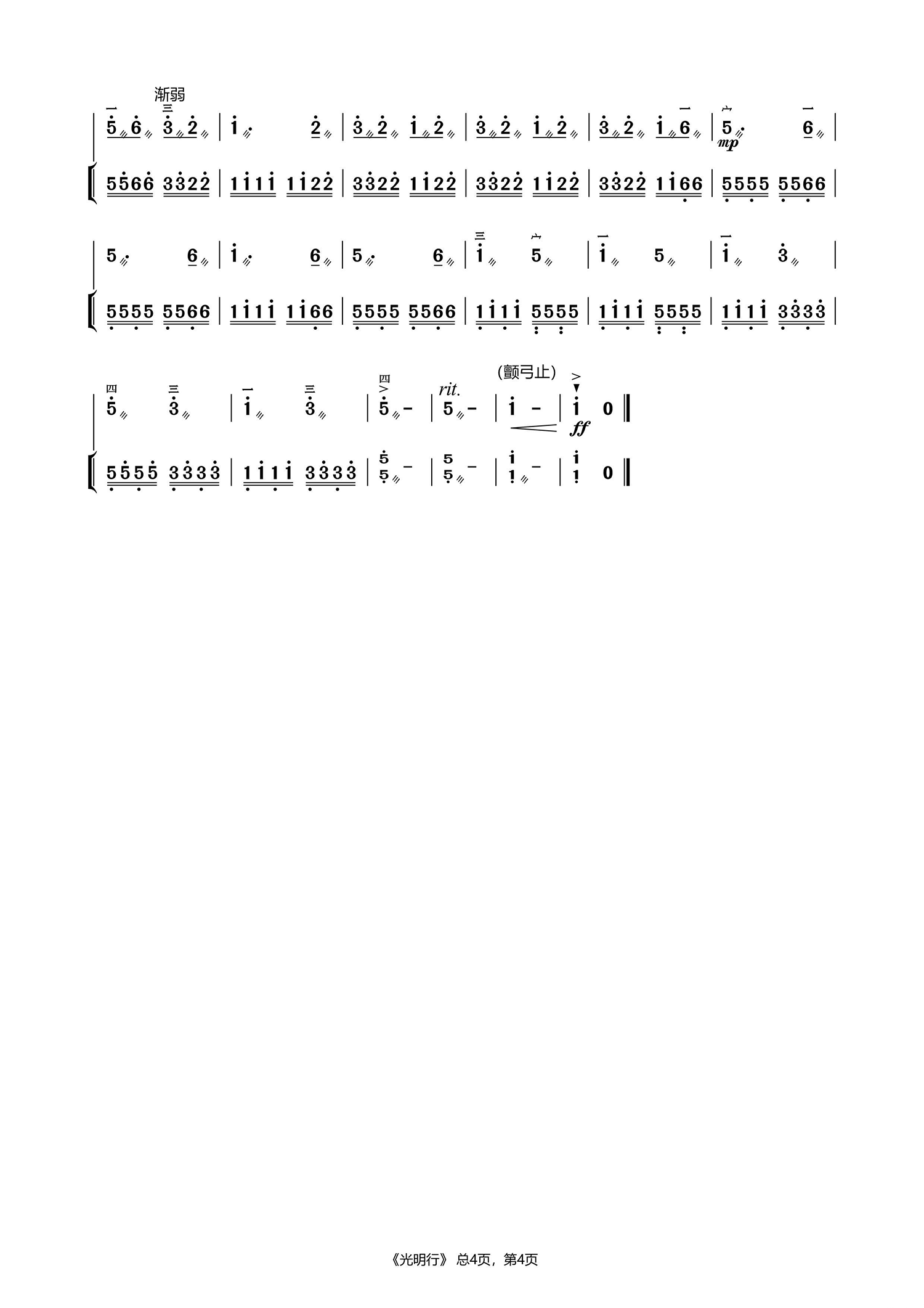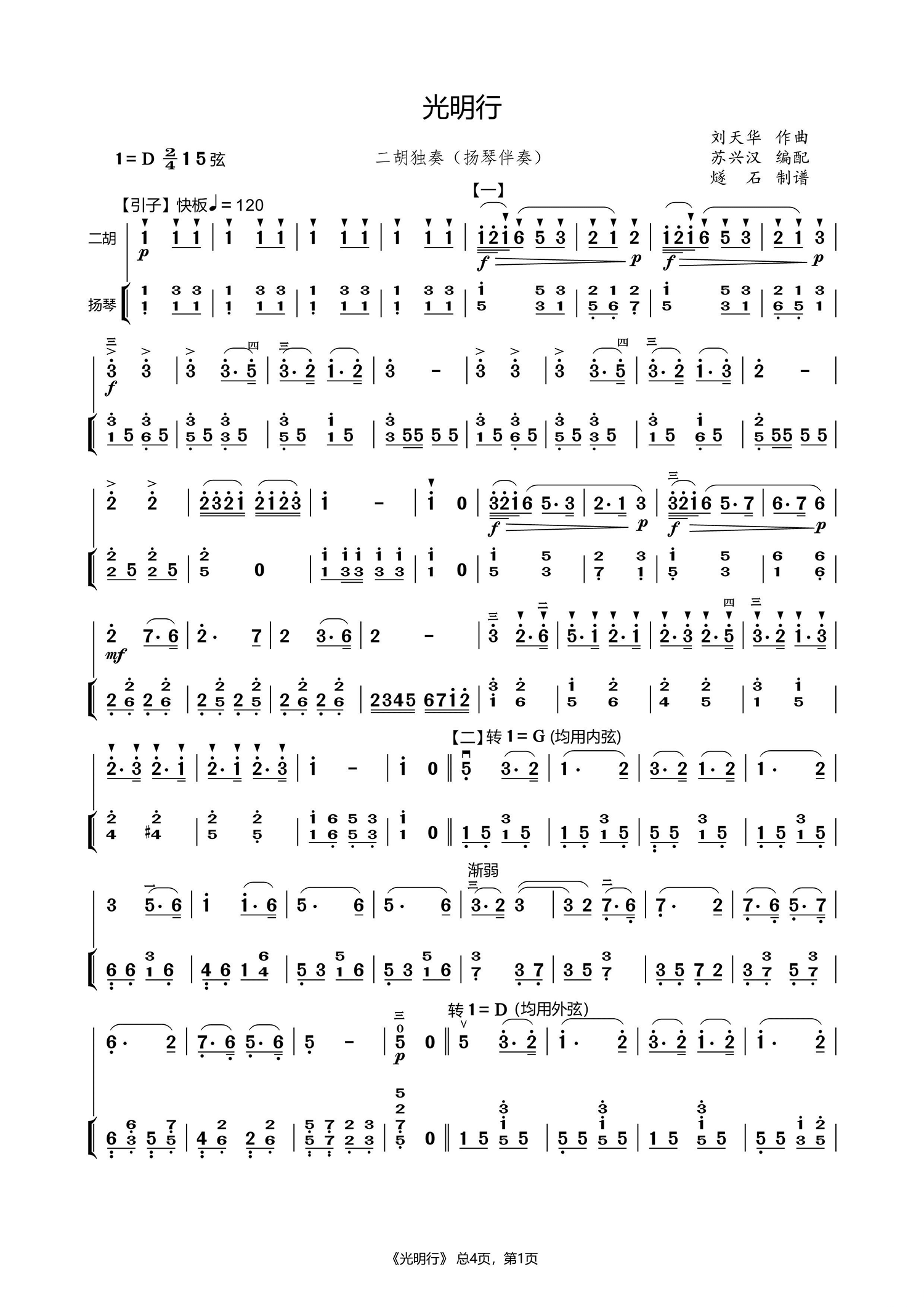 二胡乐谱曲谱 光明行(扬琴伴奏 二胡名曲)