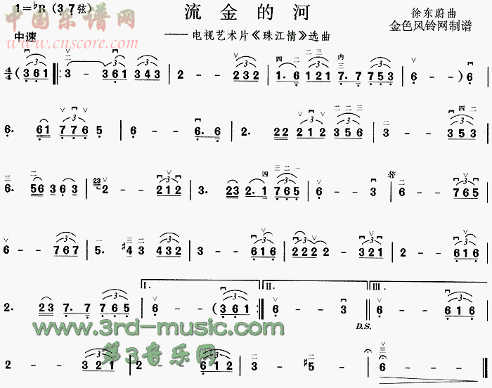曲谱名:流金的河(《珠江情》选曲)二胡谱