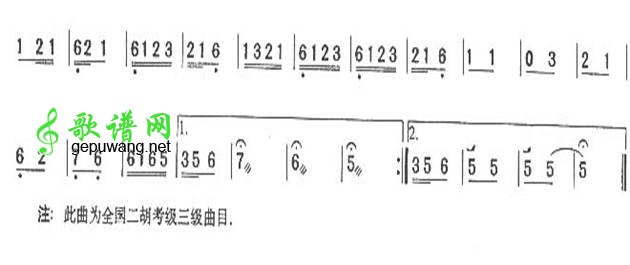 二胡乐谱曲谱 我的祖国(二胡二重奏 影片《上甘岭