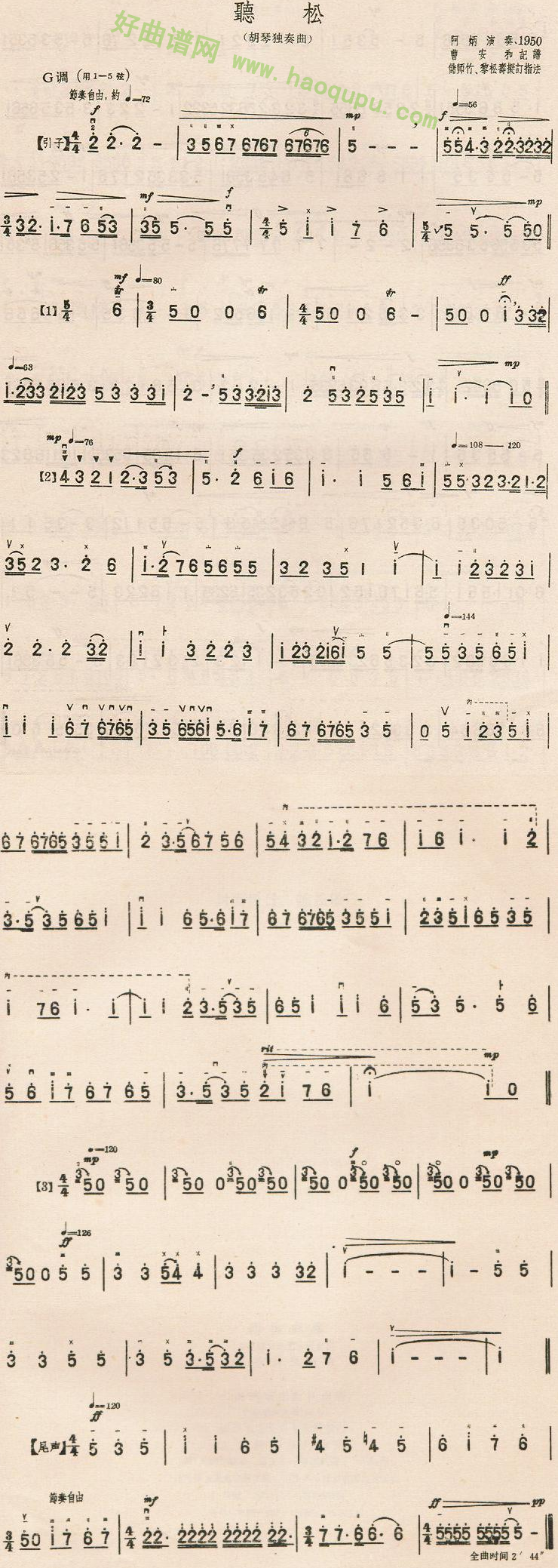 二胡乐谱曲谱 松花江上(张寒晖曲 王莉莉订谱)