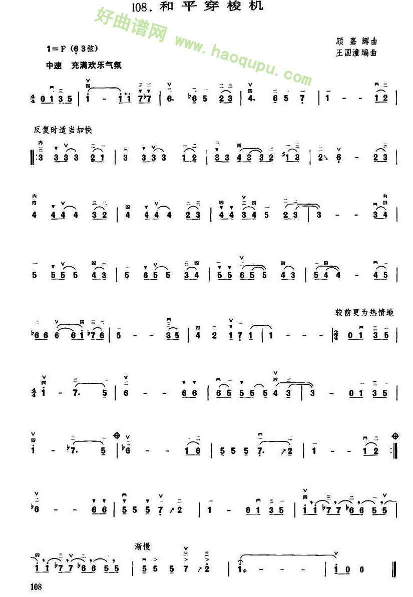 二胡乐谱曲谱 我的祖国(二胡二重奏 影片《上甘岭