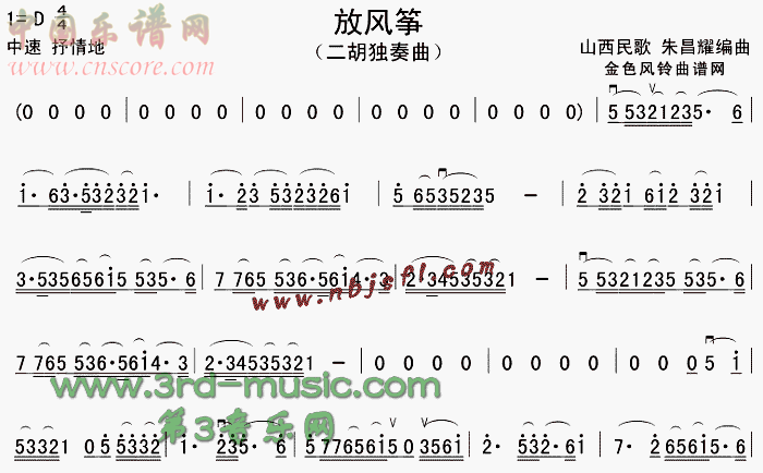 曲谱名:放风筝(山西民歌)二胡谱